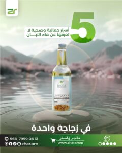 ماء اللبان العُماني منتج طبيعي يُستخلص من نقع أجود أنواع اللبان العُماني النقي، ويُعرف بفوائده المتعددة للعناية بالبشرة والشعر والجسم.